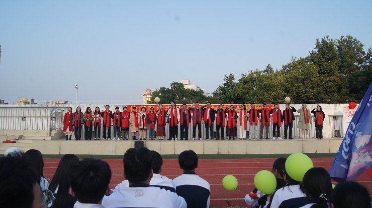 林王捷老师的深情献唱为大会增添了温馨而激昂的氛围。悠扬的歌声回荡在校园上空,舒缓了同学们紧张的情绪,同时也进一步激发了大家的斗志。