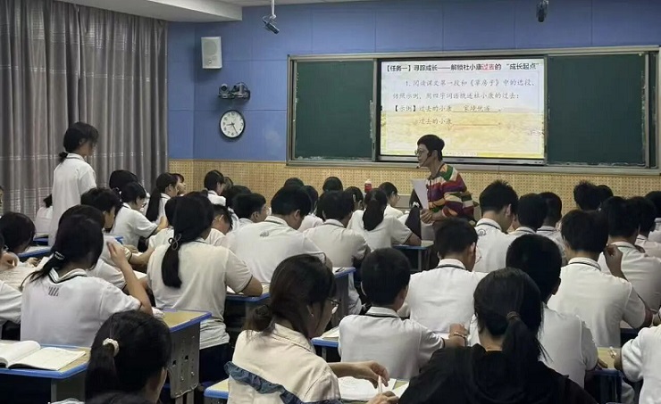 活动伊始,莆田哲理中学的黄润漪老师带来《孤独之旅》精彩观摩课。课堂上,黄老师以精简的教学设计为纲,引导学生循着杜小康的成长轨迹深入文本,通过拆解环境描写的隐喻意义、梳理人物心理的变化脉络,让“成长需直面孤独”的主题自然浮现。她全程贯穿启发式教学理念,以层层递进的提问激活思维,用自由讨论的形式点燃课堂,师生互动频繁,课堂氛围活跃。