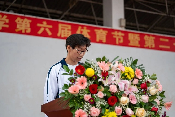 接着,运动员代表黄星烨同学与裁判员代表黄丽芳老师依次走上前台,郑重宣誓。他们的誓言,宛如铮铮铁音,深刻阐释了公平竞争、顽强拼搏的精神,有力地捍卫了体育的尊严。每一个字都落地有声,每一句话都充满力量,在每位参与者心中点燃了体育精神的火种。