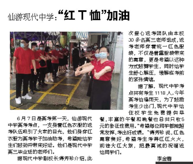 莆田晚报——仙游现代中学“红T恤”加油