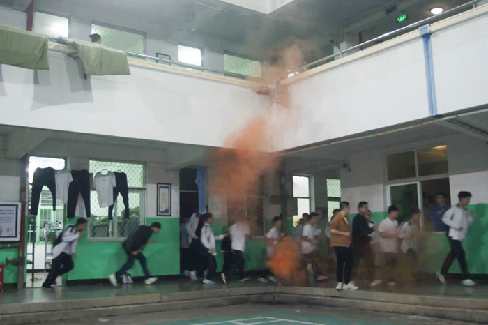 演练开始前,学校通过广播向全体寄宿生详细说明了演练的整体安排及逃生过程中的注意事项,为演练的顺利进行奠定了基础。