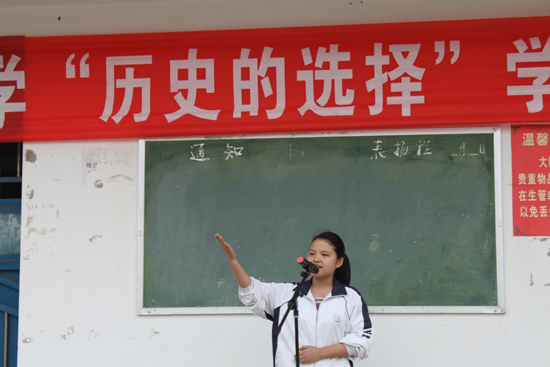 坚定历史选择 弘扬爱国精神 为纪念中国共产党成立90周年,深刻理解坚持党的领导是历史的选择、人民的选择,进一步加强爱国主义教育,坚定爱党爱国信念。2011年4月27日下午,仙游现代中学团委会举行了“历史的选择”学生演讲比赛。 比赛中选手们以饱满的激情、生动的语言赞颂了革命烈士、赞颂了党、赞颂了祖国,抒发了自己的爱国情感和报国之志。他们声情并茂的演讲,不仅赢得了评委和现场听众的阵阵掌声,也让每一位参与其中的学生深受感动,收到了很好的教育效果。 大赛最终评出一、二、三等奖,并由校领导和评委老师为获奖者颁发了荣誉证书。最后,活动在一片掌声中圆满结束。