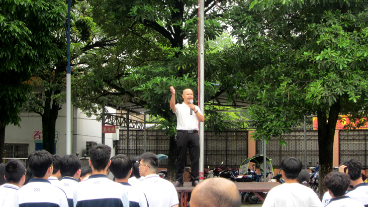 随后林加亮老师用极具莆仙特色的喊赞句,点燃了会场全体师生的激情——“全校师生聚一起,莆仙赞句喊起来。祝福高考顺顺利,考上大学欢欢喜……”